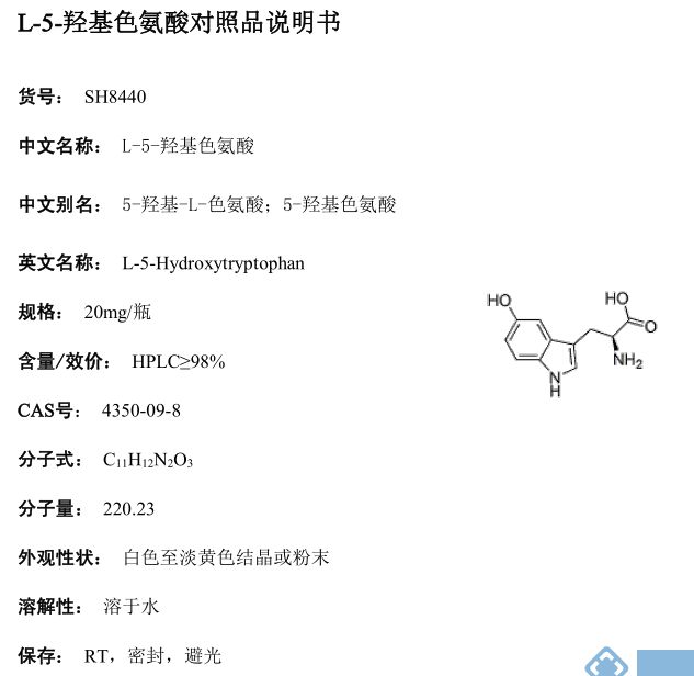 L-5-Hydroxytryptophan;L-5-羟基色氨酸-常用生化试剂-试剂-生物在线